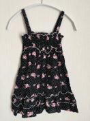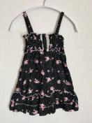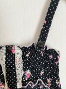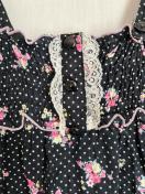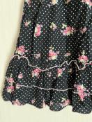 黒地に白の水玉と花柄のワンピース。