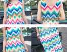 鮮やかギザギザ模様のリゾート感覚のロングワンピース。