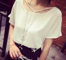シフォンカットソー半袖夏トップス v-x125b-8222