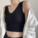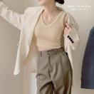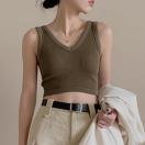 適度に広く開いた胸元と背中、カジュアルに着こなせるタンクトップです