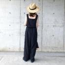 トップスの首元カットは、前が緩やかなアーチデザイン、後ろはスクエアデザインになっていて、オシャレな形です♪