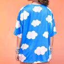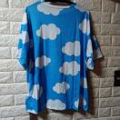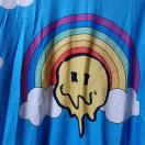 きれいなスカイブルーの空にぽっかり浮かぶ白い雲、フロントには虹が描かれたれスマイルのプリント。なんだか着るだけでウキウキするようなポップなTシャツです。サイズはMですが、大きめですのでオーバーサイズの方でも大丈夫です。