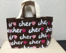 ※大人気☆Cher(シェル) トートバック 【ブラウンにホワイトでCherのロゴ、2タイプのピンクでハートを描いていてとってもキュートで可愛いです】Sサイズ