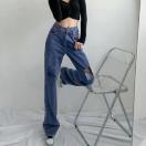 アメカジ ボトムス/低身長ロングデニム/ストリートおしゃれ