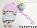 「Little Twin Stars」とデザインされたオシャレなプレートと、ライトブルーの大きめのマカロンのチャームが付いていて かわいさ満点。
