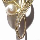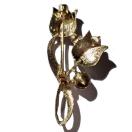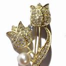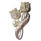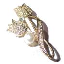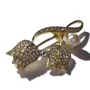 2つのゴールド色のチューリップに、人口パールとラインストーンが散りばめられたお洒落なブローチです。