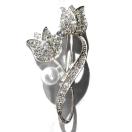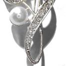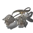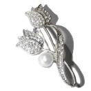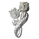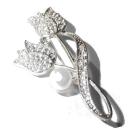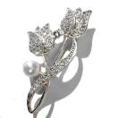 2つのシルバー色のチューリップに、人口パールとラインストーンが散りばめられたお洒落なブローチです。