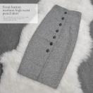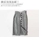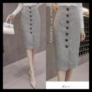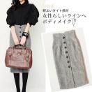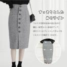 「前ボタン」のデザインと「きれいめシルエット」が大人上品な印象の、ペンシルミモレ丈ツイードスカート