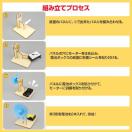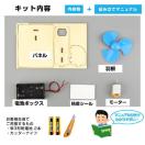 キット内容:組み立てマニュアル、組み立てキット(木製パネル、羽根、モーター、電池ボックス、粘着シール)