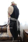ホック釦での着脱になりますので、釦位置をかえていただければほぼフリーサイズで着用いただけます。