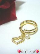 ラインストーンが散りばめられたオープンハートと一粒パールが手元をゴージャスに演出