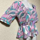 ウエストゴム入で裾がフリルになったペプラムシルエット
