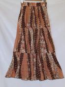 落ち着いた色合いの花柄、ボタニカル柄のプリントロングスカート です。