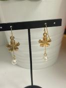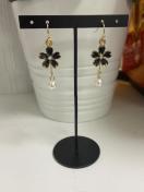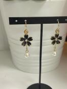 黒の花のチャームとパールビーズを使用したピアスになります。