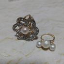 ゴールド色お花モチーフとパールモチーフのリングセットです。