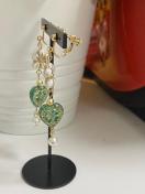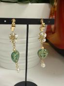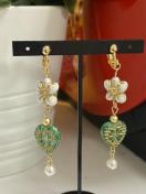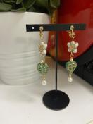 商品説明チェコビーズを使用したイヤリングになります。ハートの形のチェコビーズと花の形のチェコビーズを使用しております。