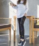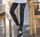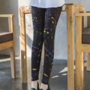 ブラシで飛ばされたペンキがプリントされたアートなレギンスパンツ。