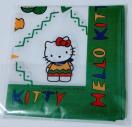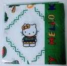 *白地にあざやかな緑色が映える、ファッショナブルなバンダナです。 散りばめられたフルーツや、まわりをぐるりと囲む「HELLO KITTY」のロゴがカラフルで、見ているだけで元気が出そう!