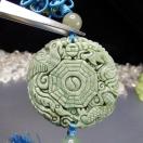 高級天然石AAA濃い目本翡翠ジェダイト龍鳳呈祥彫刻