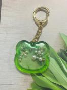 レジンで作ったシャカシャカキーホルダー カエルになります。