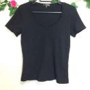 シンプルで着回し力もある無地のブラックUネックTシャツです♪