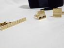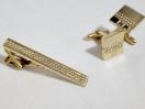 Wアイコンブロックボタン クリップタイバー ラージLブロックスクエアカフリンクス タイ留め スーツ〇メンズ