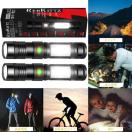 【高輝度&あなたの両手を解放します】1900ルメーンの明さで非常に明るいです、古き白熱電球より20倍明るいなり、600メートのLEDライト照射距离。超幅のビムは部屋全体かそれとも中庭を明るく照らす,堅い仕組と眩い明りを持つ。懐中電灯の背面には強力な磁石がついており、金属面にしっかりとくっつきます、使う時に便利です。このほか、懐中電灯の側面にはCOBランプが取り付けられています、普通の懐中電灯と比べて、自動車の点検や電気メーターの検査時に作業効率を高めることができます。磁石の機能と組み合わせることができます。両手を完全に解放して、作業がもっと楽です。
