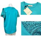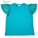 お袖のレースが女性らしいデザインで、鮮やかなグリーンが綺麗で印象的なTシャツ。TWIN-SET(ツインセット)は、イタリアのファッションブランドで、洗練されたスタイルと高品質な素材を特徴としています。1990年にシモーナ・バルビエリ(Simona Barbieri)によって設立され、その後、国際的なファッションシーンで注目を集めています。