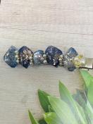 レジンで作った鉱石とパールビーズのヘアクリップになります。