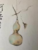 この作品の裏面に書かれている文章は、「許由(きよゆう)がもちし 瓢箪(ひょうたん)の川流れし ぶらりぶらりと 丘を流れれば 何の苦もなく 行き着く次第 平成八年 丙子」と書かれています。