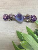 レジンで作ったドライフラワー封入の鉱石とパールビーズのバレッタになります。