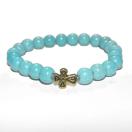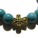 ターコイズブルー色の数珠に、ゴールド色の十字架がかっこいいブレスレットです。