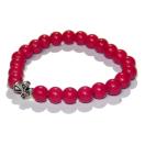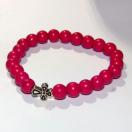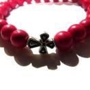 赤色の数珠に、シルバー色の十字架がかっこいいブレスレットです。