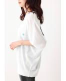 レターリングロゴニットカーディガンと同素材を使用したロゴニットトップス。レターリングロゴニットカーディガンとは違い、こちらは大きなロゴがポイントです。ボディは圧迫感を軽減してくれるこの時期にピッタリなドルマン型を使用しています。