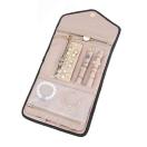 (スポンジの円筒形収納×2、ネックレス収納×4、ファスナーポケット×4、ピアス収納カード×1)