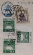 はがき料金が50銭になった時に第2次新昭和切手「五重塔秀山堂30銭」1枚と第3次昭和切手「旭日と飛燕機」3枚を加貼した郵趣的使用例です。消印はやや不鮮明でありますが、東京中央22.4.7と判読できます。肝心のはがきや秀山堂30銭切手はシミ等が多少あり、コンディション的には決してベストの状態ではありませんが、その状態は画像で判断してもらい、興味を持たれ方は是非、落札してください。なお、発送の際は追跡可能ならくらく便(ゆうパケット)を利用してもらえれば幸いです。定型内郵便の発送(この場合は発送手数料して100円は必ずいただきます)も一応は可能です。