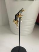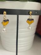 ビオラのチャームとパールビーズを使用したポストピアスになります。