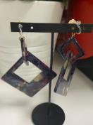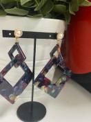 アクリルの大小のスクエアパーツを使用した樹脂のノンホールピアスになります。