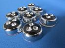プラスチック製 クロームメッキ仕様 ポイント部分ブラックアウト仕様に3ポイントのスワロフスキーが埋め込んで有ります。裏面に両面テープ付属しています。 本体サイズ 直径26mm 厚み10mm 8個セット
