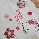 左下にキティちゃんのフェイスアップ&「はろうきてぃ」の平仮名ロゴ&梅の花プリント。