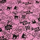 全体的に黒でキティちゃん&英字ロゴ&吹き出しセリフの総柄プリント。