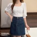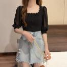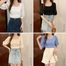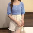 ショート丈トップス/薄手 着回しニット/ドッキングブラウス