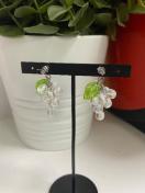 チェコビーズとプラスチックパーツ リーフを使用したピアスになります。