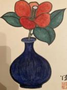 多分、色紙絵画でも、山下恒雄氏の作品、しかも題材が虫ではなく、花というのは、かなりレアなモノではないかと思います。
