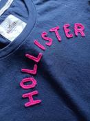 濃いピンクの、HOLLISTERロゴが、ネイビー地に映えてカッコイイです。