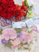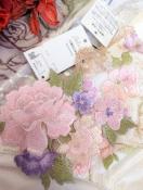 多色使いのアップリケ、レースに刺繍を重ねた豪華さ。
