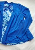 爽やかな色と背中の花柄生地がポイントの長袖カーディガン です。