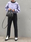 リブニットやブラウスなど、コンパクトなトップスをINすると、女性らしい着こなし、スウェットやニットと合わせれば、カジュアルでデイリーユースしやすいアイテムです