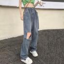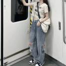 ダメージデニム韓国/ストリート大人美脚/カジュアルジーパン