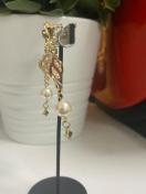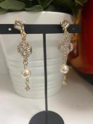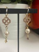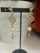 四葉のクローバーのラインストーン付きチャームとパールビーズを使用した樹脂のノンホールピアス(イヤリング)になります。